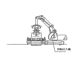 1回転圧入機・掘削機設置立坑位置まで自走させて設置する。アウトリガーで水平にする。